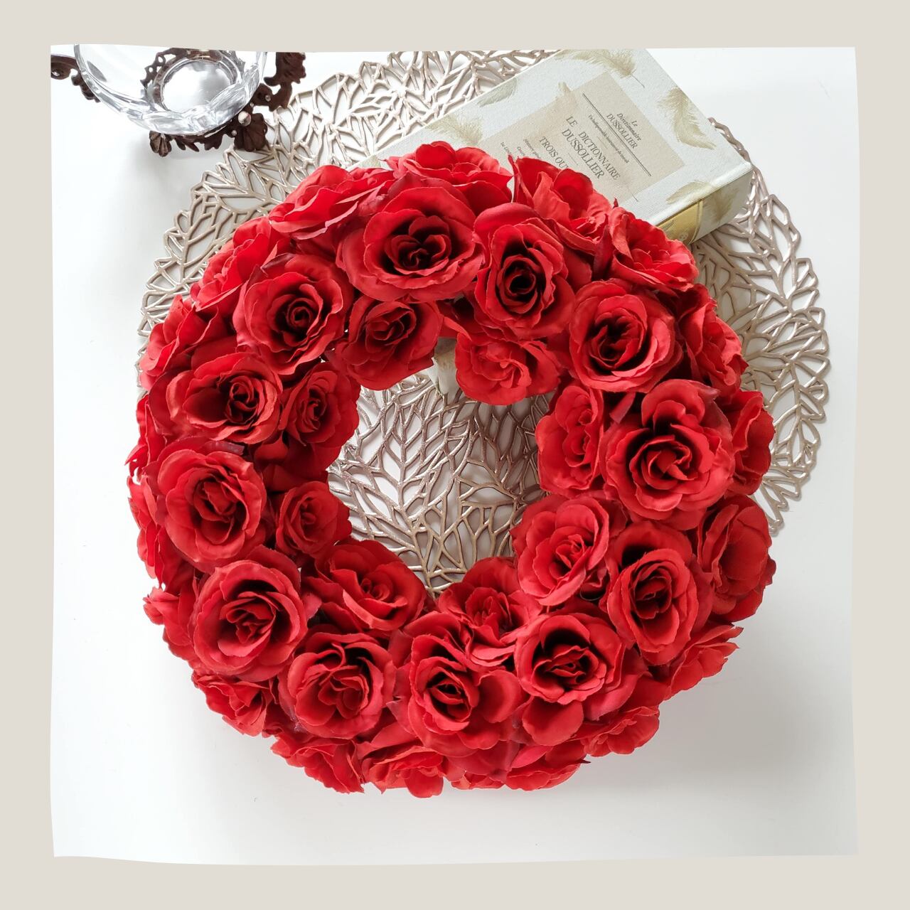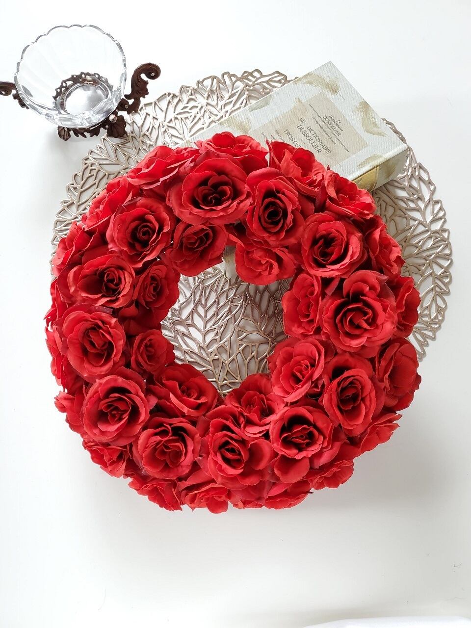 ドラマティックな真っ赤なバラのリース